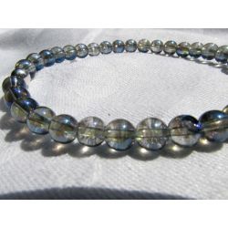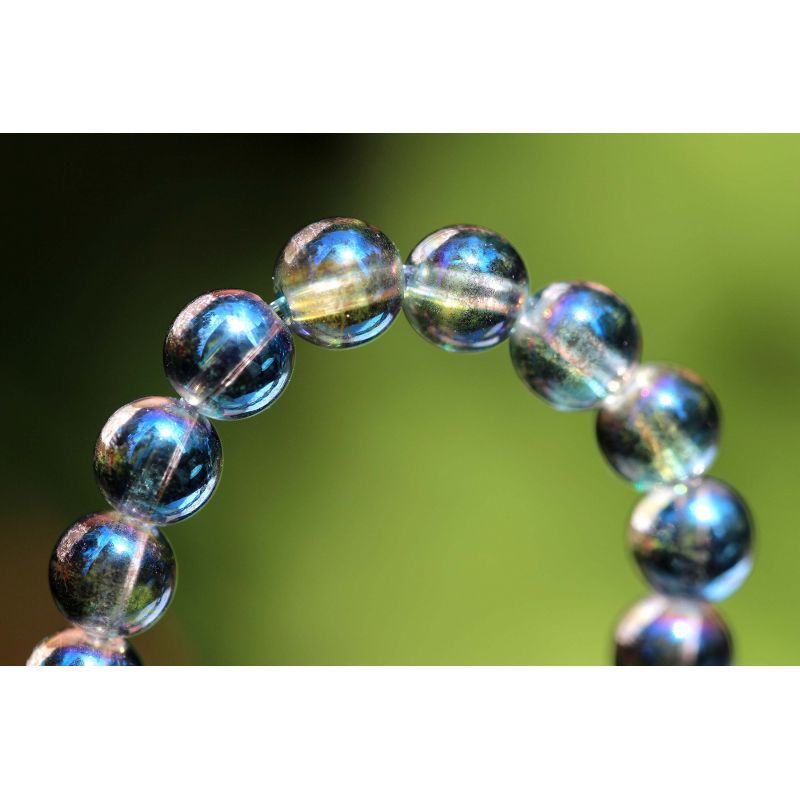 Verarbeitung: Aqua Aura Kugeln, BK / mit Gold/Titan bedampft (iridiert), gebohrt, auf Gummiband aufgezogen mit Knotenkügelchen silberf.